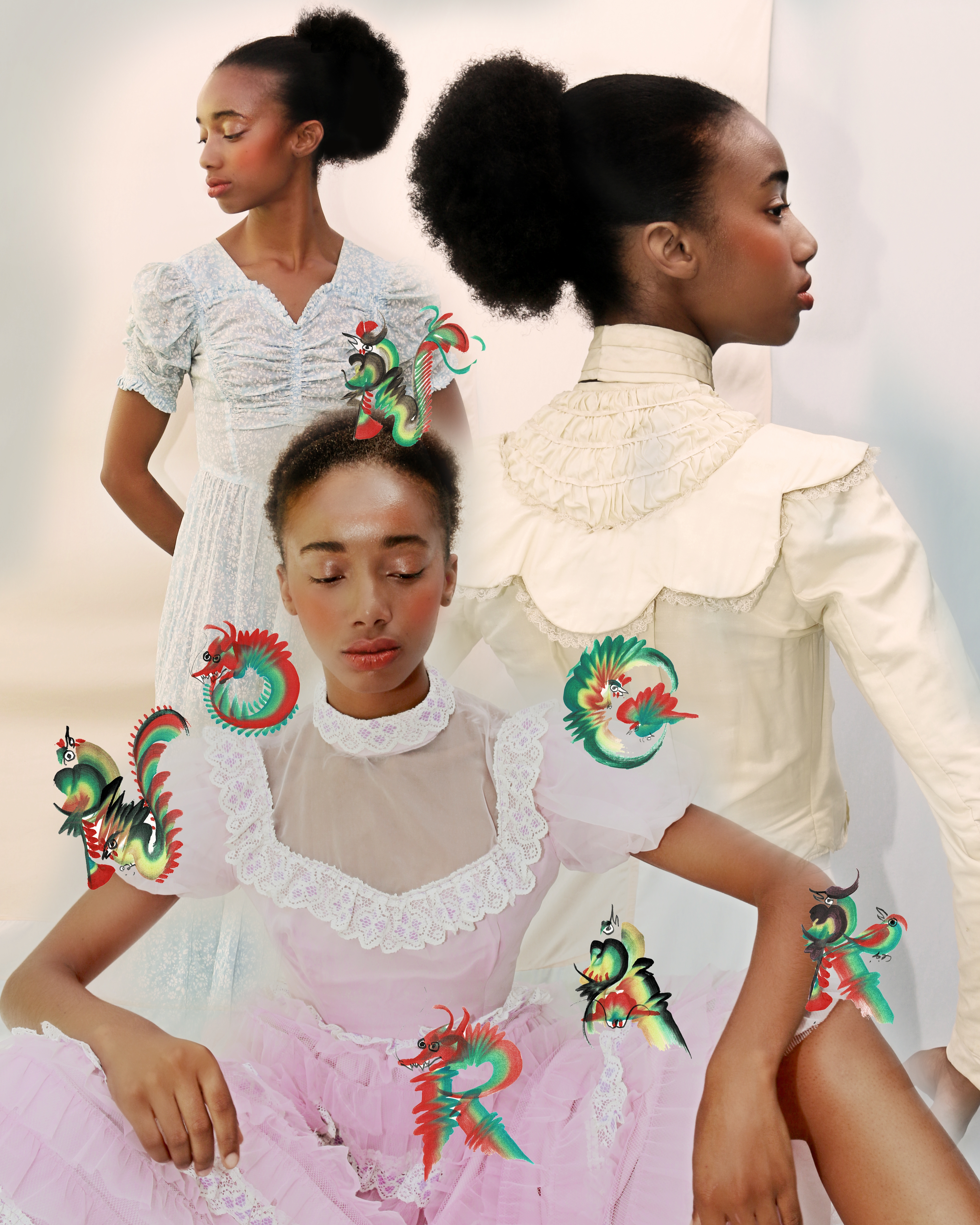 Cherry: We recently adopted the sub-title ‘maha saneh (มหาเสน่ห์)’ which is a type of amulet that pertains to love, attraction, and affection. It’s generally viewed as a kind of black magic, and the words translate to ‘full of charm,’ as the wearer is expected to become. We were interested in taking these words and redefining them to connect with the magical situations that we try to create in our photographs—the magical subjects, characters within them, and simply the magic that each item holds and gives to the wearer. Each item or character can be a lucky charm for love, which is the universal need.